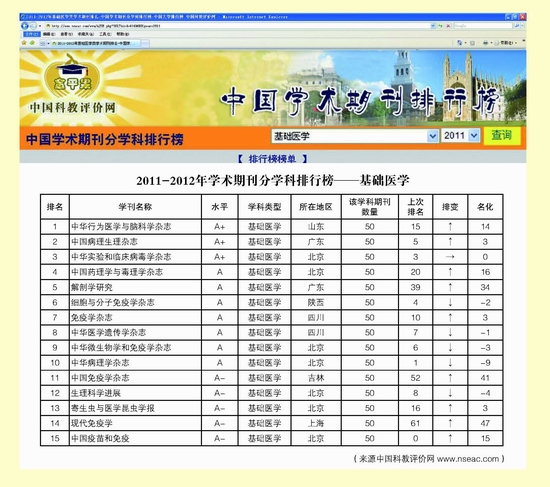 据武汉大学中国科学评价研究中心发布的《中国学术期刊评价研究报告》2011-2012版报告,《中华行为
