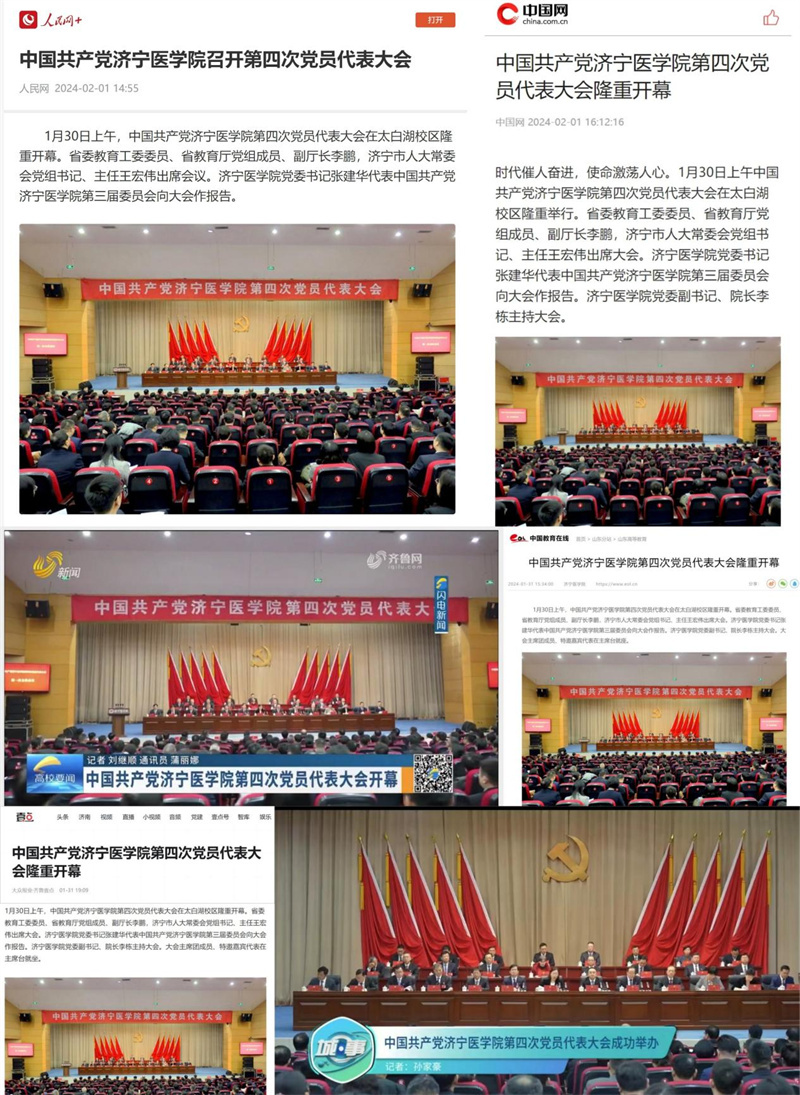 自1月30日我校第四次党代会召开以来,大会得到了社会各界和新闻媒体的广泛关注。人民网、中国网、山东教育新闻联播、大众网、闪电新闻、海报新闻、齐鲁壹点、济宁教育新闻等主流媒体对大会盛况进行了集中报道。第四次党代会是在全校上下深入学习贯彻党的二十大精神,全面建设特色鲜明高水平医科大学的关键时期召开的一次十分重要的会议,是学校政治生活中的一件大事,也是全体师生医护员工的一件喜事。大会全面回顾了第三次党代会以来学校改革、建设、发展取得的成绩,深刻总结了学校办学治校“六个必须”的宝贵经验,实事求是地指出了发展中存在的问题,全面分析了发展面临的机遇与挑战,提出了“1369”办学方略,确定了今后五年及未来一个时期工作的总体要求、发展思路、发展目标和重点任务,并选举产生了新一届党委委员、纪委委员,为全面建设特色鲜明高水平医科大学提供了强有力的政治保障和组织保障。相信在学校新一届党委领导班子的带领下,在广大党员干部和师生医护员工的共同努力下,必将汇聚起推动事业高质量发展的磅礴力量,早日实现建成特色鲜明高水平医科大学的目标任务。媒体链接:人民网:http://app.people.cn/h5/detail
