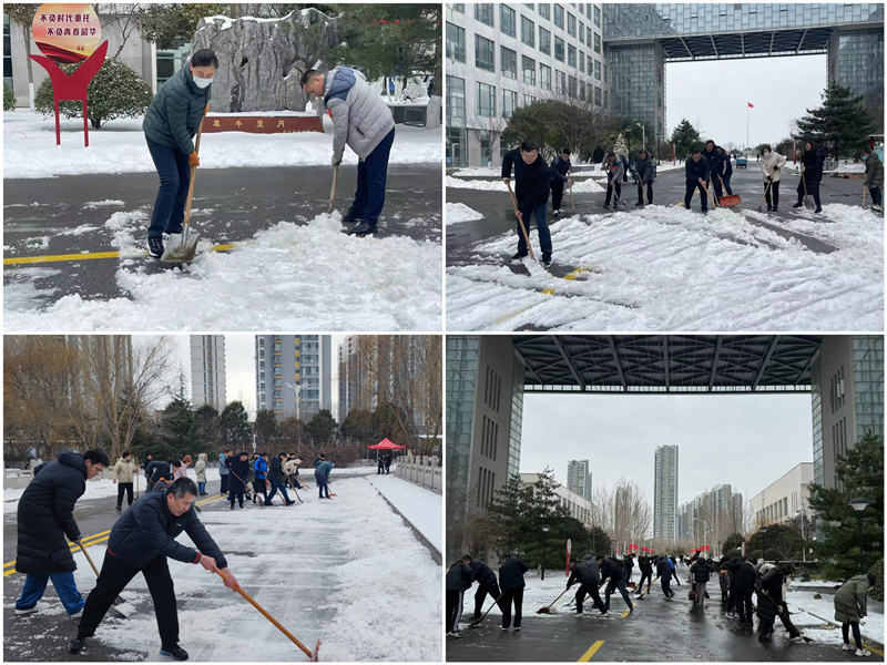 一场春雪后,校园被厚厚的积雪所覆盖。为迎接学生安全返校,确保校园环境整洁和师生出行安全,2月22日下午,校工会、后勤管理处联合组织太白湖校区义务扫雪除冰活动。天气虽然寒冷,城市道路上冰雪仍未融化,却也抵挡不住教职工返校扫雪的热情,在校工会(妇委会)主席邱玉环,后勤管理处党总支书记、处长丁国军的带领下,大家拿着铁锨、除雪铲等扫雪工具,分工明确、干劲十足,一派热火朝天的繁忙景象。在大家的共同努力下,校区主干道、广场、学生公寓院内等区域已被清扫得干干净净,整洁的沥青道路镶嵌在周围白雪之中,实现了道路畅通,保障了师生返校安全。此次扫雪活动,大家积极响应、热情劳动,充分发挥了吃苦耐劳、迎难而上的敬业精神,体现了各部门、单位的团队凝聚力,展现出新学期党员干部和教职员工立足岗位作贡献,以实际行动为学校高质量发展增光添彩的良好精神风貌。【信息来源:后勤管理处 撰稿:高先清 责编:蒲丽娜 终审:苗冠群】