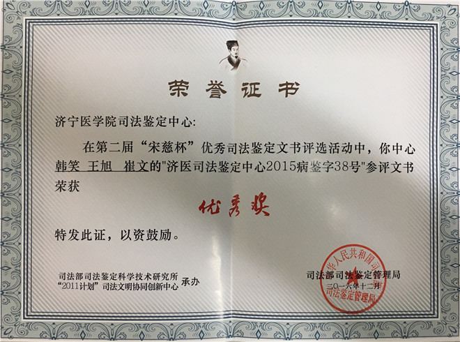 司法鉴定中心在第二届“宋慈杯”优秀司法鉴定文书评选中获奖