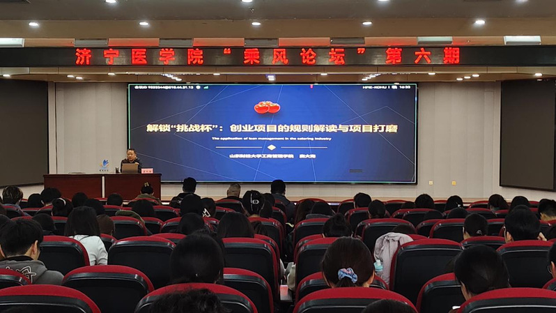 为深入推动创新创业教育,积极营造校园科创氛围,助力我校第十五届“挑战杯”大学生创业计划竞赛顺利启动,10月30日,由校团委主办的第六期“乘风论坛”在太白湖校区、日照校区同步举行。论坛特邀山东财经大学教授、山东松乔餐饮管理有限公司董事长窦大海博士担任主讲嘉宾,校团委副书记张一梦主持活动。窦大海博士以《解锁“挑战杯”:创业项目的规则解读与项目打磨》为题,立足自身深厚的学术背景与丰富的创业实战经验,围绕“挑战杯”创业计划竞赛的规则要点与项目培育逻辑展开系统讲解。他聚焦实践过程、社会价值、创新意义、产业价值等核心维度,深入阐释了专利权属、运营主体、商业逻辑等基础要素在项目构建中的重要作用。针对项目产品形态模糊等常见问题,他结合往届金奖案例,系统拆解了项目从构思到落地的全流程打磨路径,并就市场调研、技术研发、团队建设等方面提供了具有实操性的指导。此外,他还从创业实践者与投资人双重视角处罚,补充了项目价值判断的多维标准,为师生备战竞赛拓展了思路。此次论坛兼具理论深度与实践指导价值,为师生搭建了高质量的交流学习平台,有效破解了赛事筹备过程中的重点与难点问题,进一步激发了广大学生的参赛积极性,为学校“
