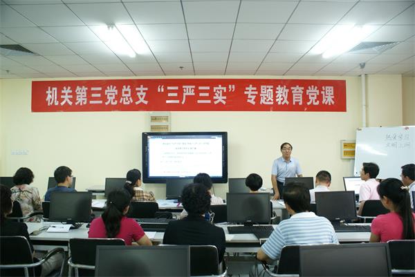 6月1日下午,机关第三党总支组织全体党员、科以上干部在图文信息楼电子阅览室进行“三严三实”专题教育,