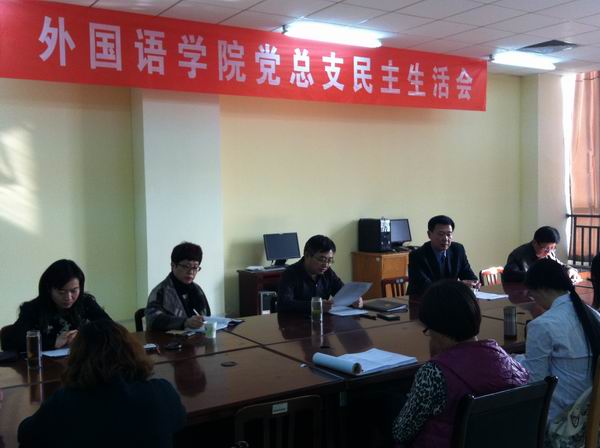 1月7日,外国语学院召开党总支民主生活会,纪委副书记邓世春出席,外国语学院党总支书记王传功主持会议。