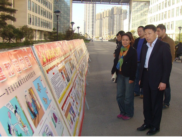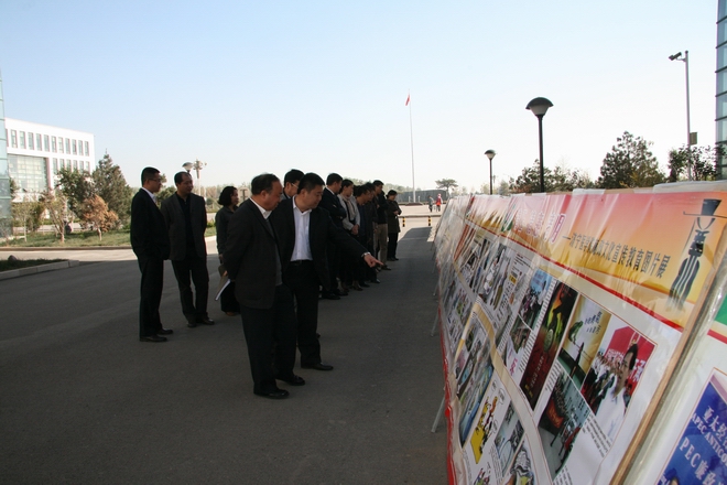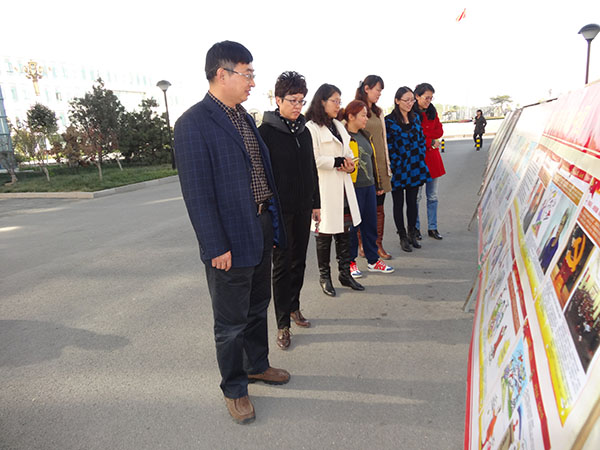 11月7日上午,机关第一党总支全体党员干部来到教学楼前,集中观看廉政文化宣传教育图片。展览上,生动有