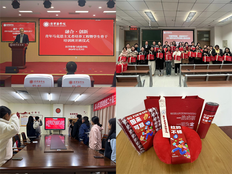 为深入学习贯彻党的二十届三中全会精神,贯彻落实学校第四次党代会精神,医学影像与检验学院开展“党建带团建,赋能助学子”系列育人活动,以思想驱动、组织发动、阵地带动“三个动能”赋能青年学子,教育引领学生成长成才。思想驱动赋能,彰显青年学习力。学院坚持从政治上着眼、从思想上入手、从青年特点出发,发挥学院领导领学促学、班级团干部带头学的作用,举行“融合·创新”青年马克思主义者培养工程暨学生骨干培训班、秋季学期新发展团员入团仪式、团支部主题团课学习等活动,教育引导青年学生坚定理想信念,打牢专业根基,提高创新能力,在担当中历练,在尽责中成长。组织发动赋能,凝聚学院向心力。坚持以赛促练,以赛促学,以中青年教师教学竞赛为契机,加强教风建设,促进教学质量和教学水平不断提高,提升育人质量。开展“心随影动,‘检’墨飘香”学院院徽、院训征集活动,塑造和展现学院形象,传承和弘扬学院文化,增强师生的荣誉感和归属感。开展“手机入袋、课堂入心”专项行动,营造“我要学”的良好课堂氛围。阵地带动赋能,强化学子战斗力。强化宿舍阵地管理,组织全体学工队伍开展宿舍安全和卫生检查,教育引导学生共建整洁和谐的住宿环境。搭建科研和学