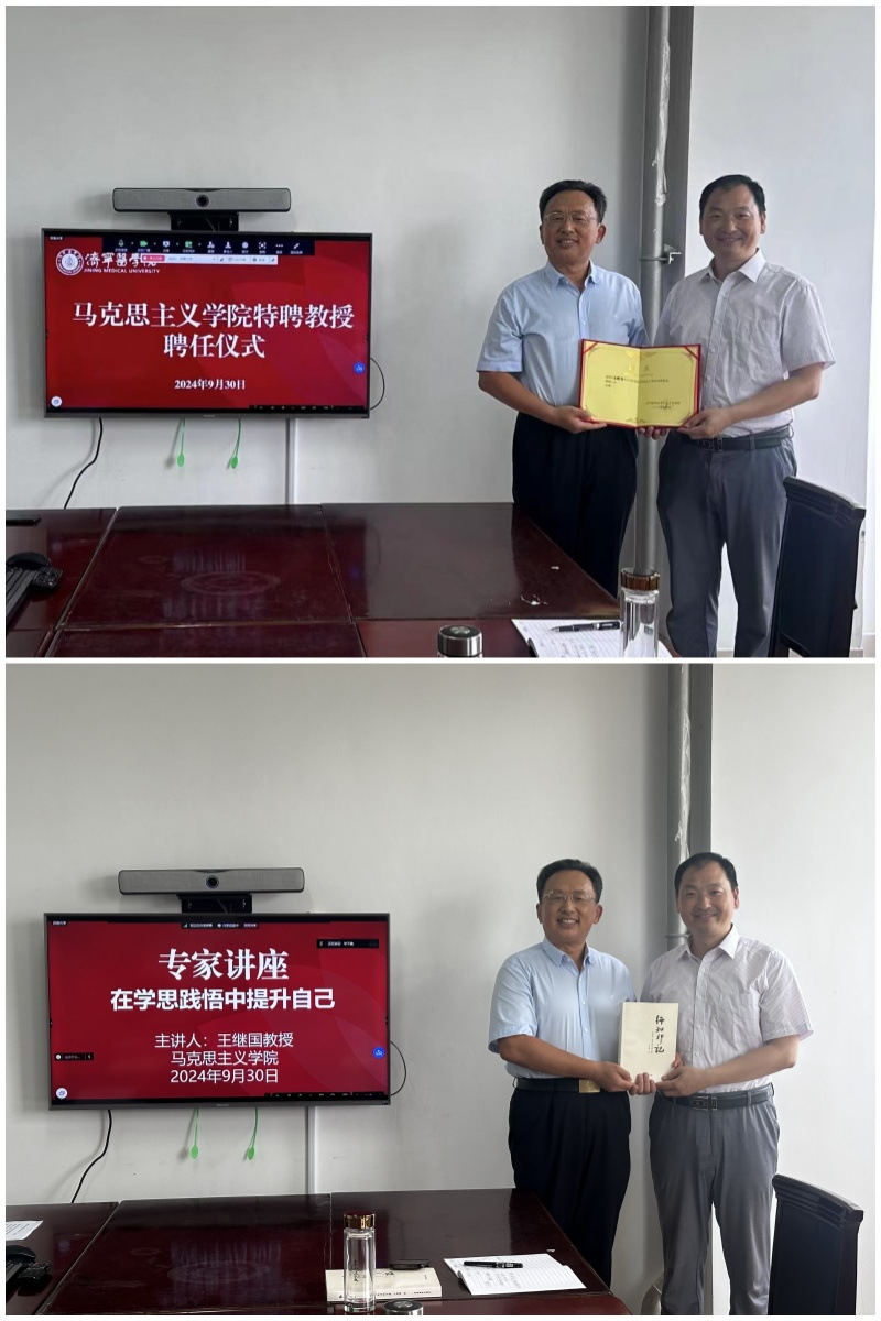 为贯彻落实习近平总书记对学校思政课建设作出的重要指示精神,进一步建强专兼职思政课教师队伍,提升思想政治理论课教育教学质量,9月30日上午,马克思主义学院邀请日照机场王继国教授作《在学思践悟中提升自己》的专题讲座。讲座由马克思主义学院党委副书记、院长毕于建主持。王继国从学习贯彻落实党的二十届三中全会精神讲起,深入解读了全面深化改革的内涵与意义。他结合国家对教师、特别是思政课教师的总体要求以及国家的现实发展要求,解析了提高思政课教师理论素养的重要性和深远意义。讲座后,马克思主义学院举办特聘教授仪式。仪式上,毕于建与王继国签订特聘教授聘任协议,马克思主义学院陈海华为王继国颁发特聘教授聘书。王继国捐赠《行知印记—从高校、党政机关到空港》的书籍,表示将竭尽所能认真履行特聘教授职责,积极发挥自身优势与资源,助推马克思主义学院高质量发展。毕于建表示,要进一步树立人才强校意识,做好特聘教授服务工作,努力为特聘教授创造良好的工作环境和条件,更好发挥其“头雁”作用,带动青年教师更快成长,不断提升马克思主义学院的知名度和影响力。【信息来源:马克思主义学院 撰稿:张雅茹 责编:蒲丽娜】