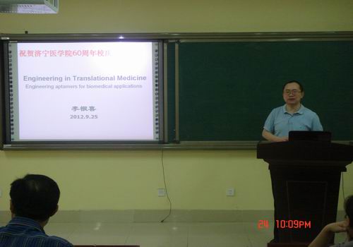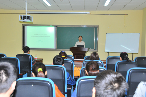 2012年9月25日南京大学生化系主任、上海大学生命科学院院长博士生导师李根喜教授在科研楼报告厅为我