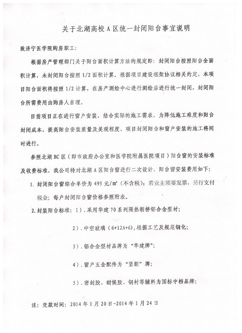附件: 附件1:A区阳台公章说明 附件2:A区每户封闭阳台费用说明