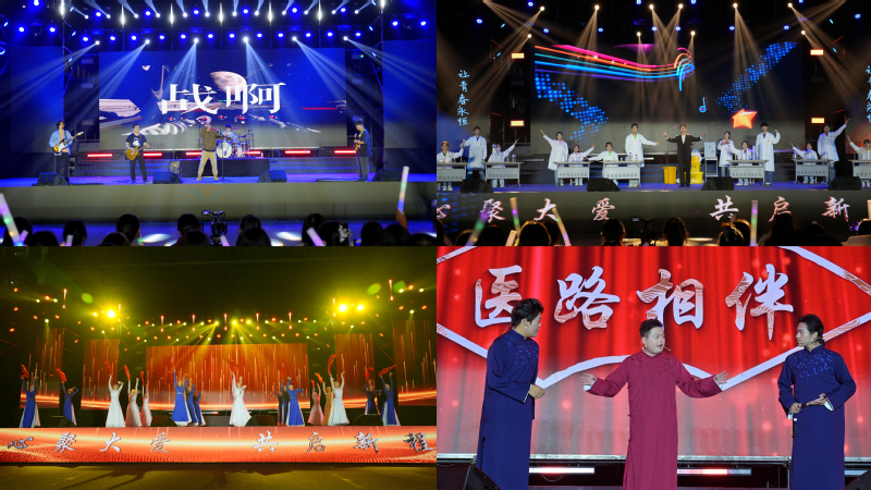 心”新相赴,灯火流光。9月28日晚,“心聚大爱 共启新程”2025年迎新文艺晚会在太白湖校区儒医广场隆重举行。学校党委书记卢国华,党委副书记、院长李栋及校党委班子成员张贤雷、王慧云、王文姮、庞玉成、张甲福、刘传新、张利宁观看演出并与演职人员合影留念。晚会以精彩序章开篇,未来处方乐队率先登场,激情演奏瞬间点燃全场热情;校歌改编版创意打击乐《洁白的梦圣洁的情》精彩上演,明快节奏既彰显“济医特色”,更将开场气氛推向高潮。整场晚会深度融合“大爱济医”精神与“儒医文化”内涵,以“迎·逐梦赤心”“溯·儒医仁心”“传·大爱同心”三大篇章层层递进展开。日照校区艺术团携精心编排节目加盟,与太白湖校区师生同台联动,共展风采。迎·逐梦赤心,青春筑梦启新程。原创舞蹈《源·生命》以灵动舞姿诠释对生命礼赞;相声《医路相伴》妙趣横生讲述医学生的成长趣事;歌伴舞《追风赶月的人》以磅礴歌舞生动演绎一代代济医人勇毅前行的奋斗姿态,生动展现新生开启大学的逐梦之旅的憧憬与朝气。溯·儒医仁心,文化根脉铸特色。舞蹈《清河书韵》以翩跹舞姿勾勒出儒医交融的历史画卷;舞台剧《中医颂》在传统与现代碰撞中搭建“儒医文化”共通桥梁;女声小合