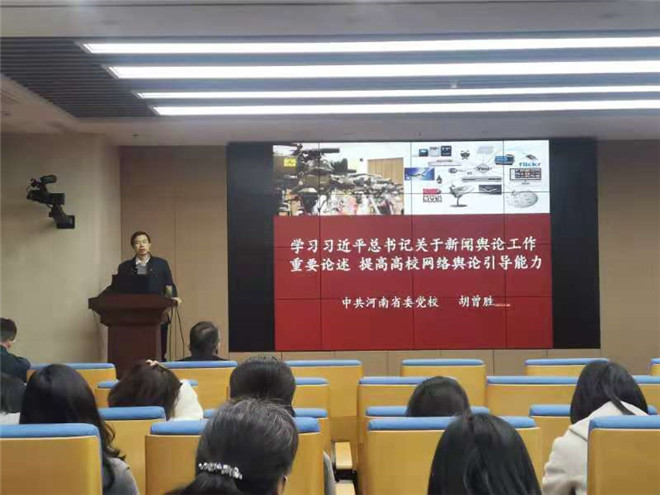 11月12日至13日,学校第五期辅导员论坛在太白湖校区和日照校区举行。论坛邀请河南省委党校科社部副教授胡曾胜作《学习习近平总书记关于新闻舆论工作重要论述,提高舆论引导能力》的专题报告。胡曾胜围绕“高校工作者如何提高舆论引导能力”这一主题,结合自身的研究成果及经验,从新媒体时代舆论监督的特点、网络意识形态安全状况、高校校园网络舆论的引导和高校校园网络舆论突发事件应急机制建设等四个方面进行了讲解。报告紧扣形势、内涵丰富、通俗易懂,既有理论总结,也有实例剖析,对高校学生工作队伍如何做好舆情应对、处置工作具有很强的针对性和指导性,为全校学生工作者如何有效引导广大青年学生营造良好的向善向美的网络环境、促进学校和谐稳定发展提供了理论指导。各学院党总支副书记,学生管理科科长、团总支书记,专兼职辅导员,学生工作处、团委全体人员参加论坛。
