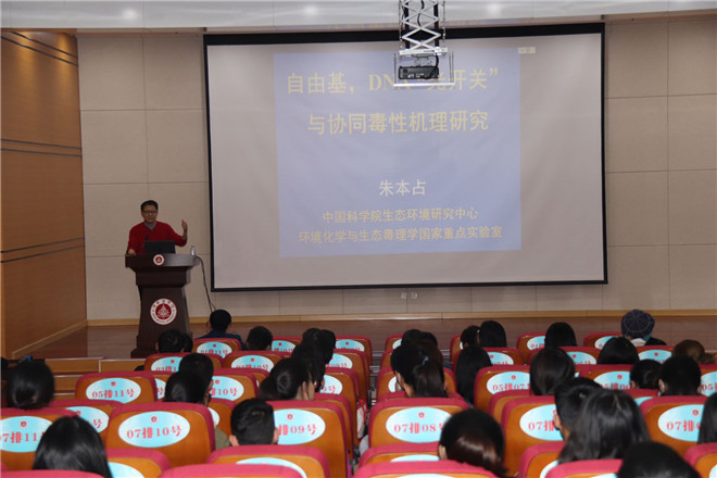 10月14日下午,中国科学院生态环境研究中心环境化学与生态毒理学国家重点实验室朱本占研究员做客“微山湖”学术论坛。论坛由公共卫生学院副院长林立主持。朱本占以“DNA光开关与协同作用”为题,阐述了自由基的形成机制、钌盐复合物的“DNA光开关”的分子机制及光动力治疗肿瘤等研究的最新进展,分享了科研心得,同与会者进行交流。公共卫生学院部分师生参加活动。【信息来源:公共卫生学院 撰稿:解瑞宁 责编:苗冠群】