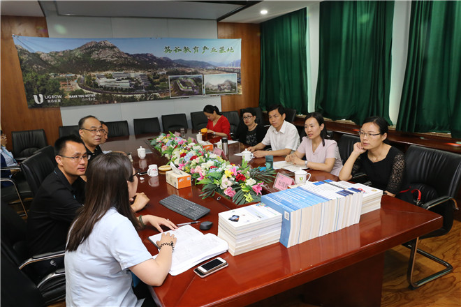 6月20日,外国语学院党总支书记张秋生,副院长陈培君、朱敏以及相关老师专程赴青岛英谷教育科技股份有限
