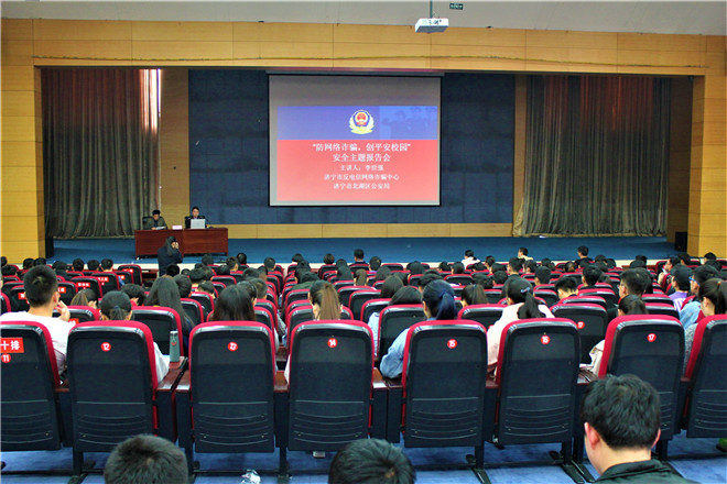 4月16日下午,基础医学院邀请济宁市打击治理电信网络新型违法犯罪中心张正、李世强、陈雷刚和北湖区公安