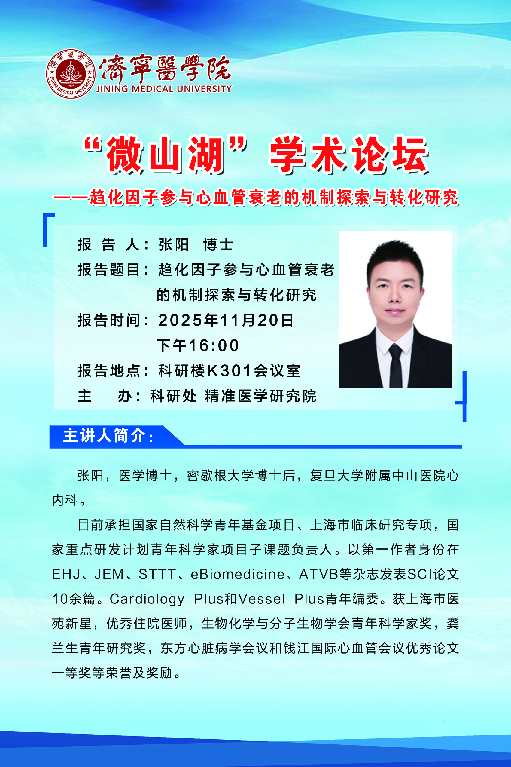 一、主讲人王保平教授二、时间、地点2025年11月5日(周三)15:40太白湖校区博学楼(图文信息楼)五楼报告厅三、主题《如何成长为优秀的儒医》《血液稀释自体再生——长寿医学的新方向》四、参加人员学生工作处相关工作人员和学生代表五、有关要求1.参会学生通过“到梦空间”报名(报名时间为11月4日8:00-22:00)。2.请参会人员提前10分钟到达会场。活动开始前将手机关机或调至静音,活动期间严肃会场纪律,禁止交头接耳、玩手机等行为。联系人:王文铖;联系电话:666189学生工作处2025年11月3日附:主讲人简介王保平,血液稀释自体再生医学创始人、济宁老年血管病医院创始人,诺贝尔奖得主国际科学交流协会杰出科技创新奖获得者。济宁医学院、济宁电视台客座教授,泰国皇室成员特邀健康顾问。英国皇家医学会会士、美国纽约科学院院士、中国侨联理事、中国科学家协会会员。其“血液稀释·自体再生 中西医整合医学研究”课题列为国家卫生健康委“十四五”规划全国重点课题,并荣获国家卫健委教研成果一等奖。先后在国内外杂志发表论文近百篇,曾100多次受邀在人民大会堂、钓鱼台国宾馆、中国科学院会堂及北京大学、清华大学、
