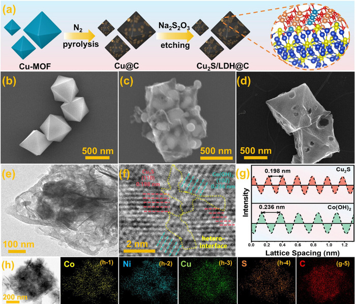 近日,药学院科研团队以第一通讯单位,在材料科学领域国际顶级期刊《Advanced Functional Materials》(AFM,中科院一区TOP,JCR一区,影响因子19)发表题为《Encapsulated Strong-Coupled Cu2S/CoNi-LDH Heterojunction in Mesoporous Carbon for Advanced Aqueous Alkaline Zinc Batteries》的研究论文。药学院戴方旭博士为第一通讯作者。研究团队创新提出氧化还原驱动的原位刻蚀策略,成功构建出嵌入八面体碳基体的强耦合Cu₂S/CoNi-LDH异质结。该结构通过高温煅烧还原Cu颗粒,与硫代硫酸钠反应生成Cu2S并释放OH⁻,诱导Co²⁺/Ni²⁺共沉淀形成LDH。异质界面形成的强内建电场可实现约2.39e⁻由LDH向Cu2S高效转移,显著加速电荷传输;三维碳网络既能有效抑制材料团聚,又可缓冲充放电过程中的体积效应,为碳封装LDH基异质结构的设计提供了通用方法。下一步,药学院将持续深化与国内外高水平高校及科研院所的合作,不断拓宽合作渠道,创新合作模式,产出